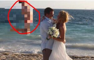 In one of the pictures of the two, a shameful thing appears in the frame, fixed behind them. Being so focused on kissing her chosen one’s heart and smiling to look perfect in the picture, she did not notice what was happening behind her, and this was later seen in the pictures. It seems that the photographer didn’t think too much and didn’t edit the photo either, probably because he thought it was funny too.
