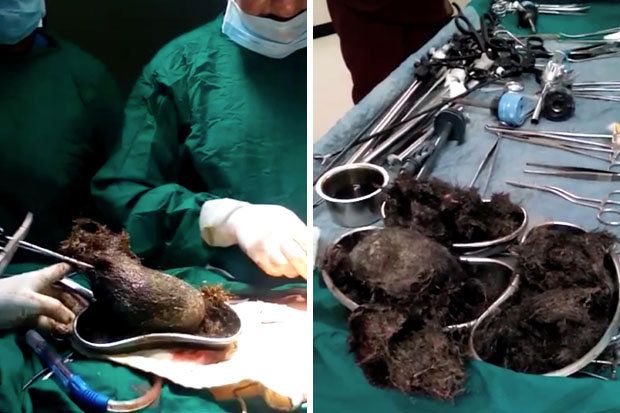 That’s why they immediately put her in the operating room and discovered that she had a huge ball in her stomach, 3 kilograms of hair that made her digestive system no longer function properly.