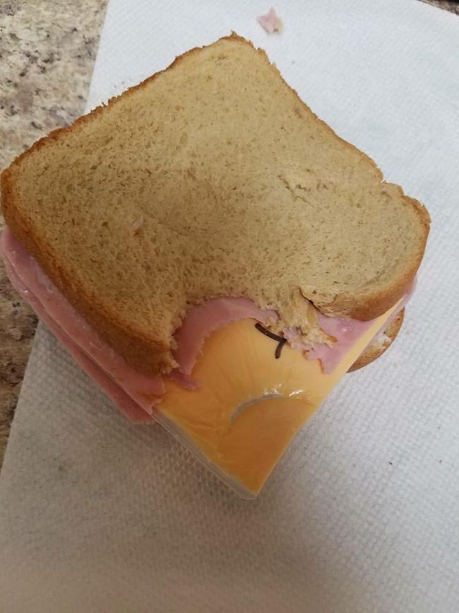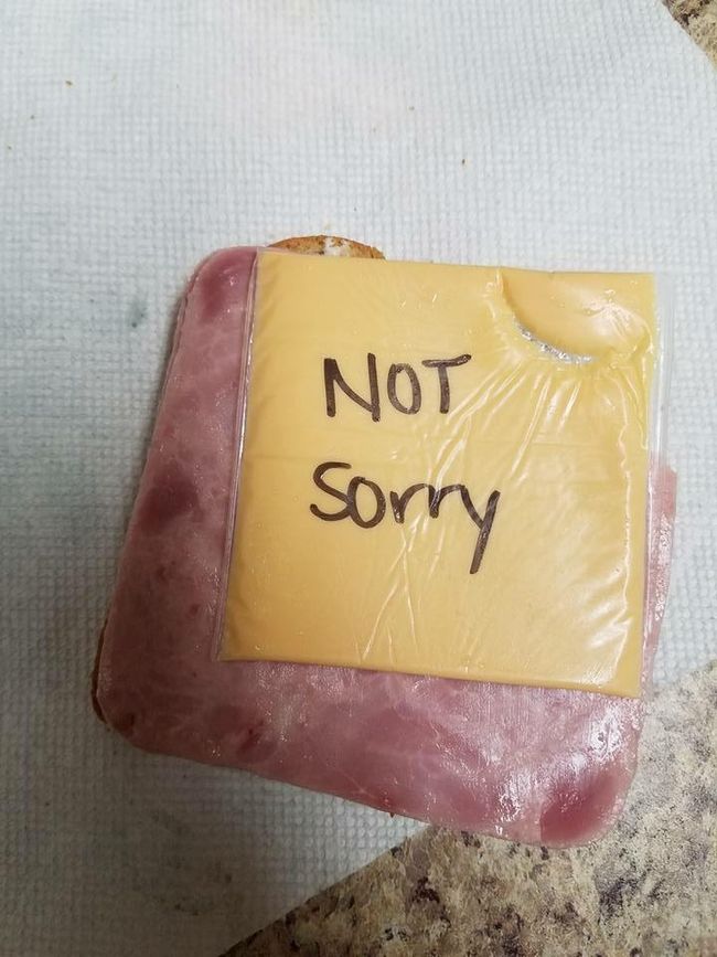 The cheese was hidden among the ham and he noticed what his wife did to him only after he bit into it. When he opened it, he saw that there was a small note there, written on plastic. The woman had written to him: “I’m not sorry at all.”