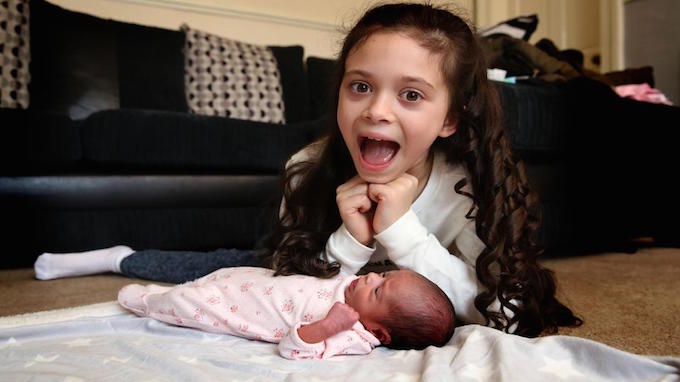 The two children were upstairs watching a movie when Chantelle shouted for them to come quickly because she felt it would not take long and she would be born, not having time to call an ambulance.