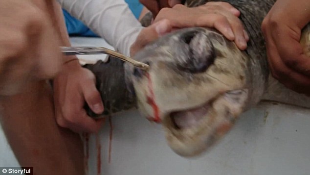 They spend almost 10 minutes torturing a turtle for its own good: the poor animal had a plastic straw in its nose! Christine Figgener, a tick turtle expert, said it looked like a worm at first.