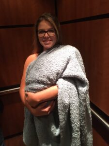 With Patsy wrapped in a blanket, Shelby entered the hospital with confidence. Everyone thought there was a baby under the blanket, not a hidden dog.