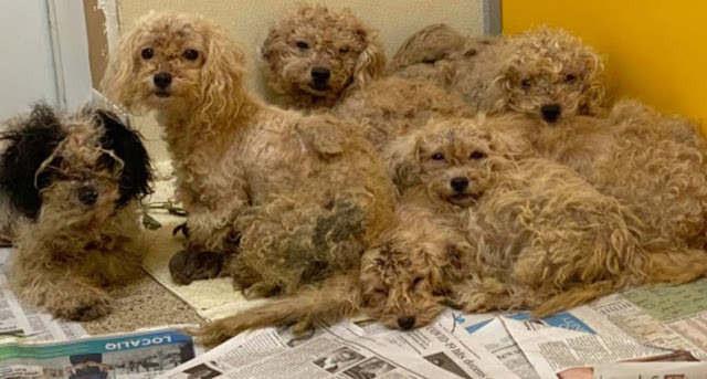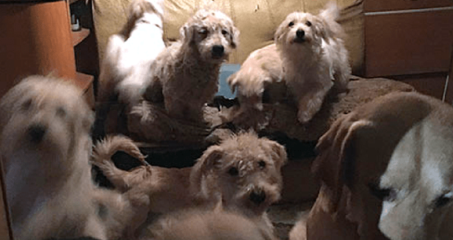 They found 34 dogs full of parasites and fleas and very sick.