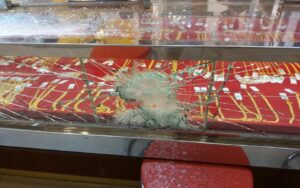 After they managed to destroy the first layer, they discovered that level two consists of an even more rigid material: laminated polycarbonate. After many failed attempts, they gave up and ran away from that place, with their tails between their legs and pockets even more empty than before.