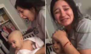 The mother put her hands on a head shaver and started to remove every piece of hair, turning the baby’s head into a small and shiny bulb.