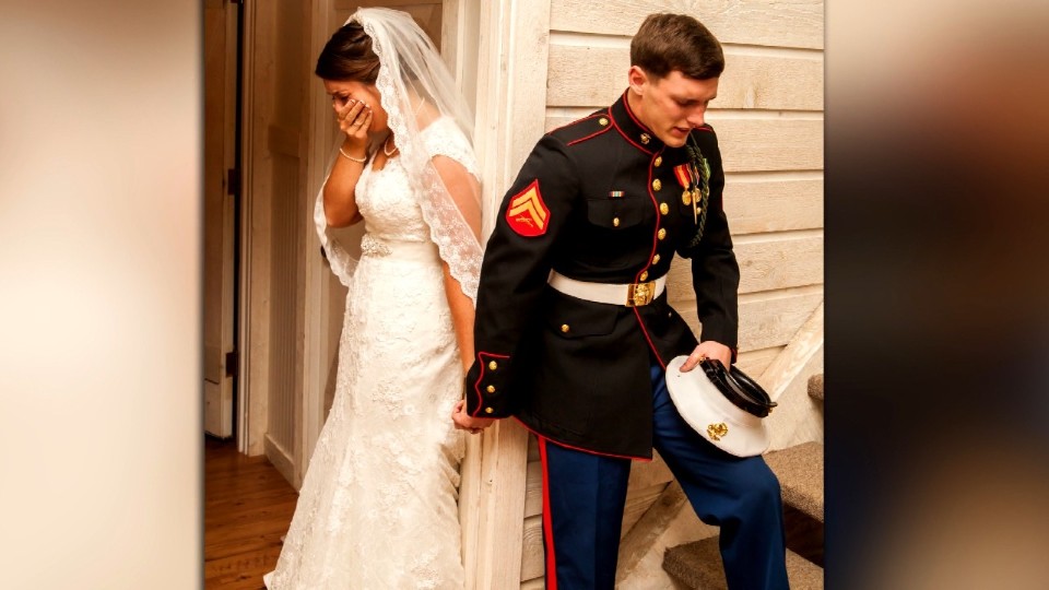 Corporal Caleb Earwood wished to have a moment of prayer with his future wife before he married. The prayer was dedicated to their future marriage. And as there is a tradition that says that the groom should not see the bride before the wedding, the two did not look at each other, just held hands. And they prayed together.