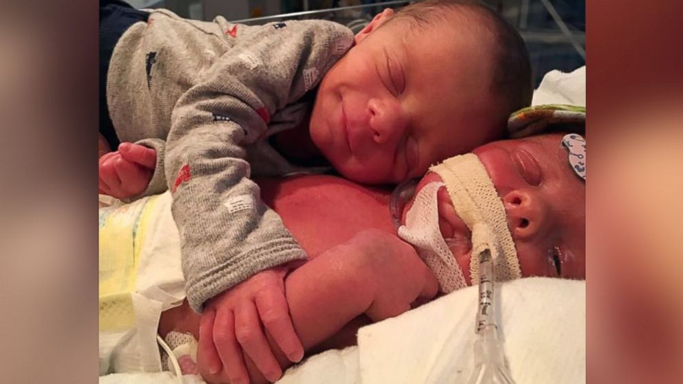 Of the twins, named Mason and Hawk, only one was born healthy and the other underwent several surgeries due to a birth defect.