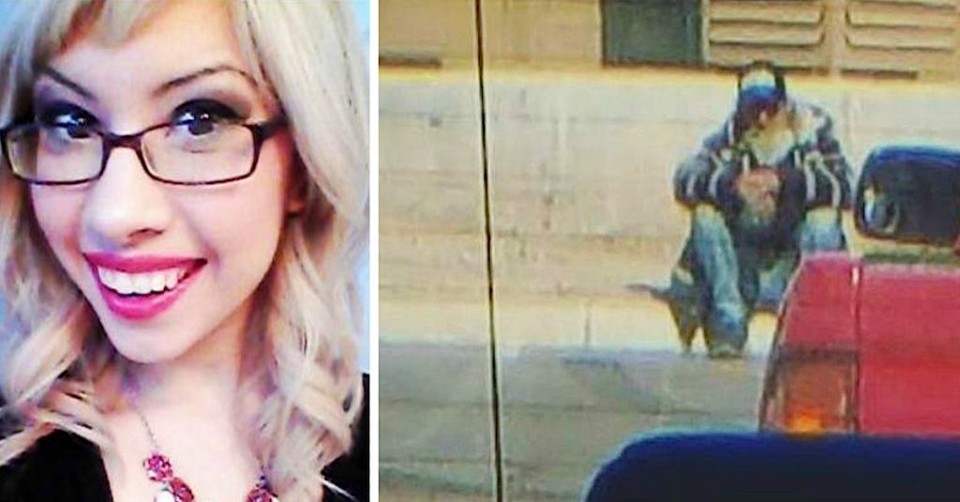She had just arrived in the restaurant parking lot when she noticed a bearded, uncombed man simply sitting on the curb!