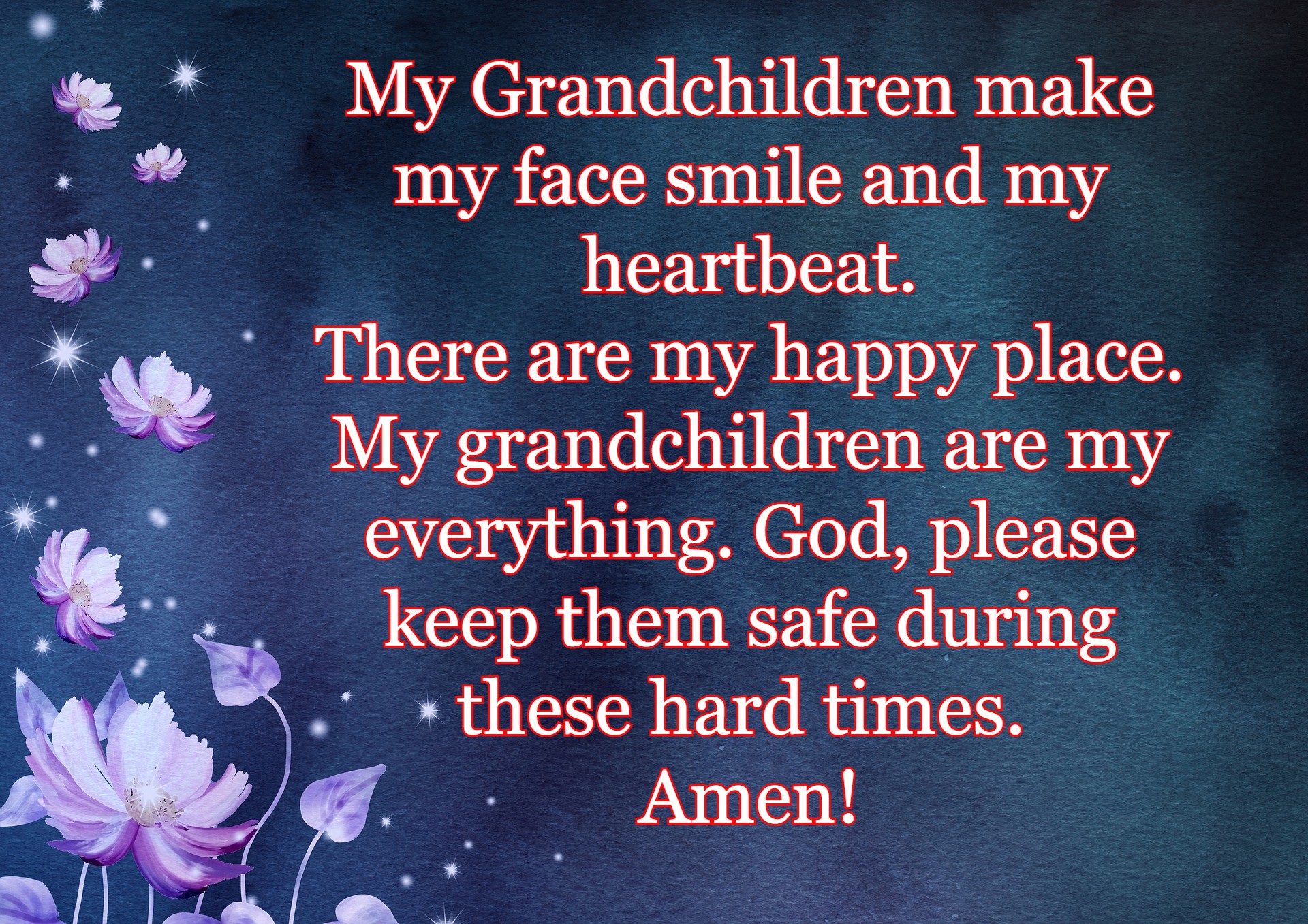 My Grandchildren make my face smile and my heart beat. There are my happy place. My Grandchildren are my everything. God, please keep them safe during these hard times. Amen!