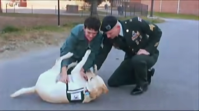 Bill Campbell, a veteran that served in the Iraq War took his Yellow Labrador named Pax to the facility where he was trained and he had a pretty nice surprise over there.